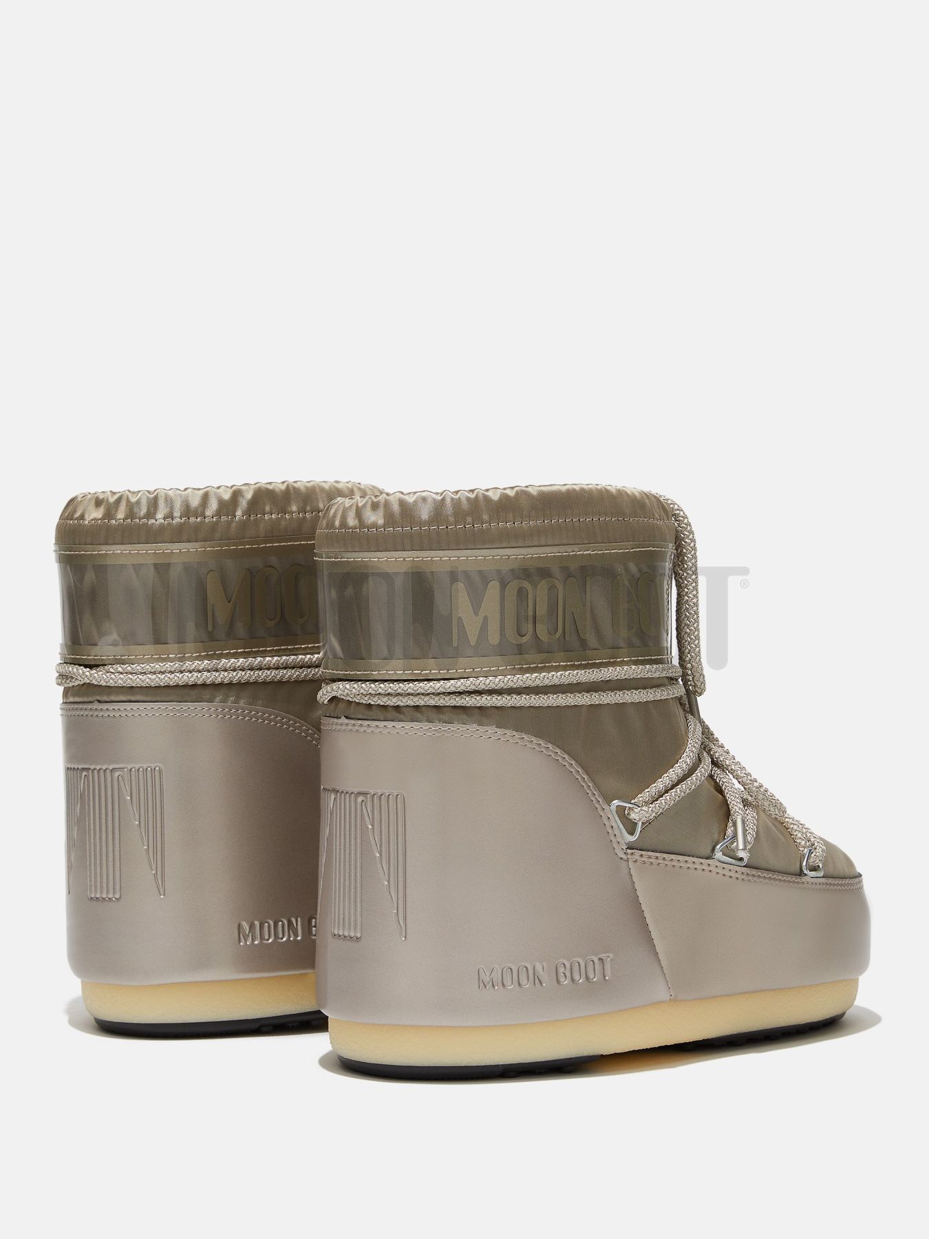 Низкие мунбуты Moon Boot Icon low glance platinum - Не все то золото, что блестит... иногда это глянцевые атласные Moon Boot. Вдохновленный высадкой на Луну 1969 года, дизайн Icon является интерпретацией высокотехнологичного снаряжения астронавтов, сконструированных по космическим технологиям Nasa еще в 70-х в Италии. Он имеет все признаки оригинала: утепленный, оснащенный легкой подошвой и присоски на резиновой подошве, обеспечивающие надежный контроль над землей. Благодаря пенообразному внутреннику Memory Foam ноги не мерзнут при сверхнизких температурах, до -35. Так как они очень мягкие, то идут сразу на три размера: 35–38, 39–41 итд. После нескольких выходов принимают форму вашей ноги и форму правого и левого сапожка. Верх из глянцевого текстиля.