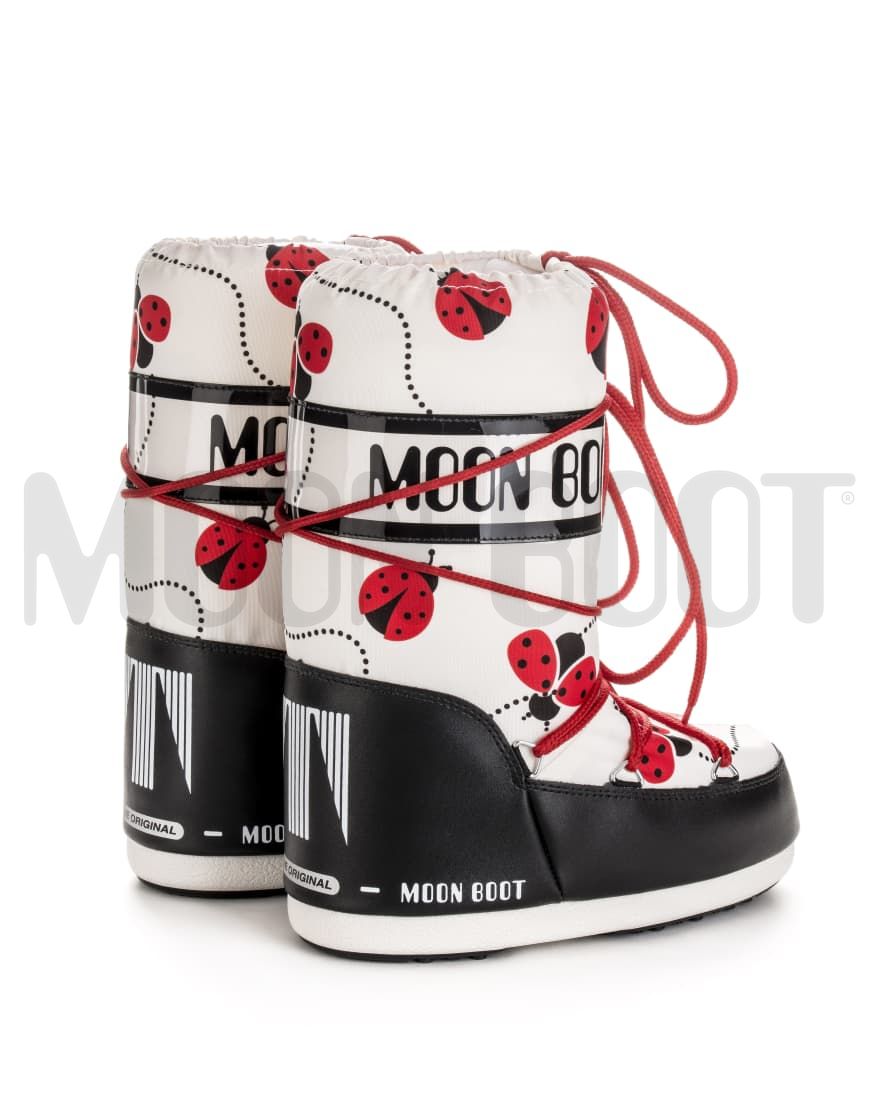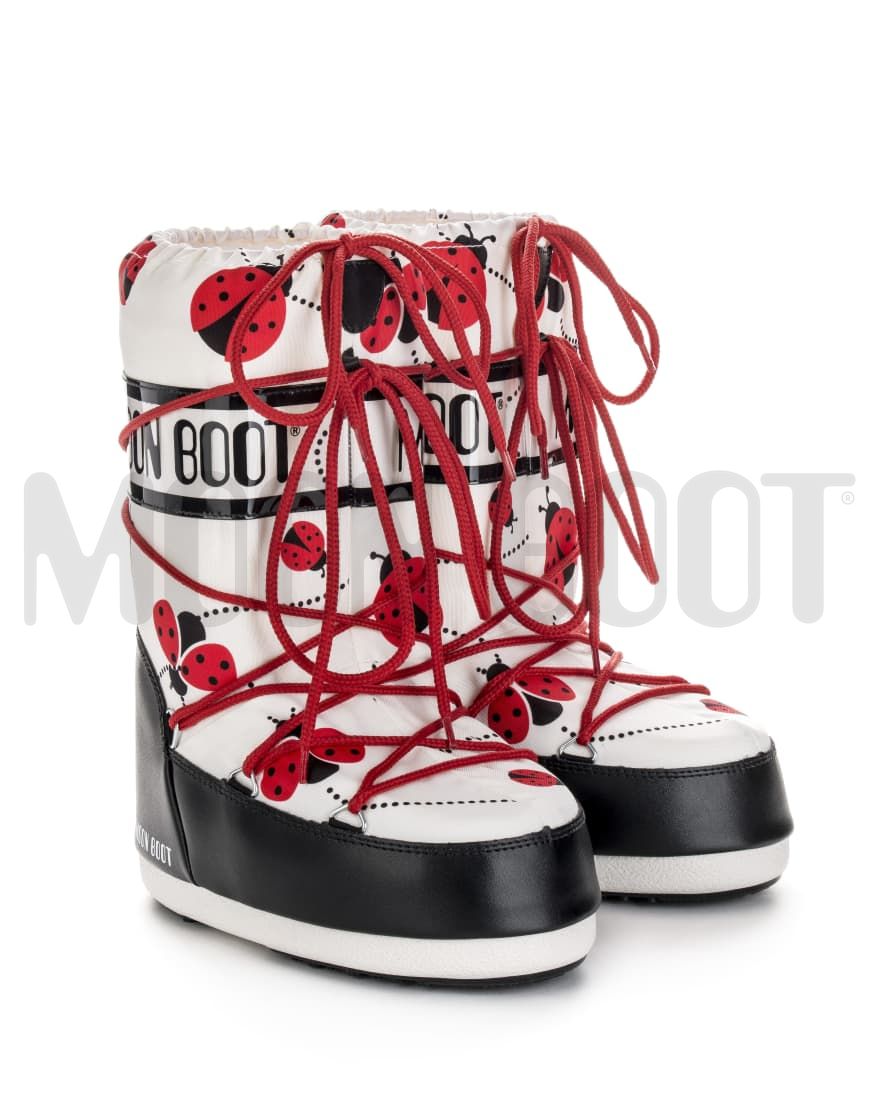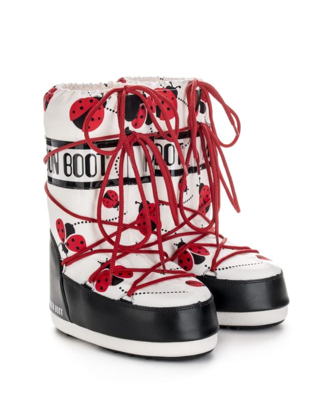 Детские мунбуты Moon Boot JR Girl ladybug - Вдохновленный высадкой на Луну 1969 года, дизайн Icon является интерпретацией высокотехнологичного снаряжения астронавтов, сконструированных по космическим технологиям Nasa еще в 70-х в Италии. Он имеет все признаки оригинала: утепленный, оснащенный легкой подошвой и присоски на резиновой подошве, обеспечивающие надежный контроль над землей. Благодаря пенообразному внутреннику Memory Foam ноги не мерзнут при сверхнизких температурах, до -35. Так как они очень мягкие, то идут сразу на три размера: 23-26, 27-30, 31-34 итд. После нескольких выходов принимают форму вашей ноги и форму правого и левого сапожка. Верх из текстиля.