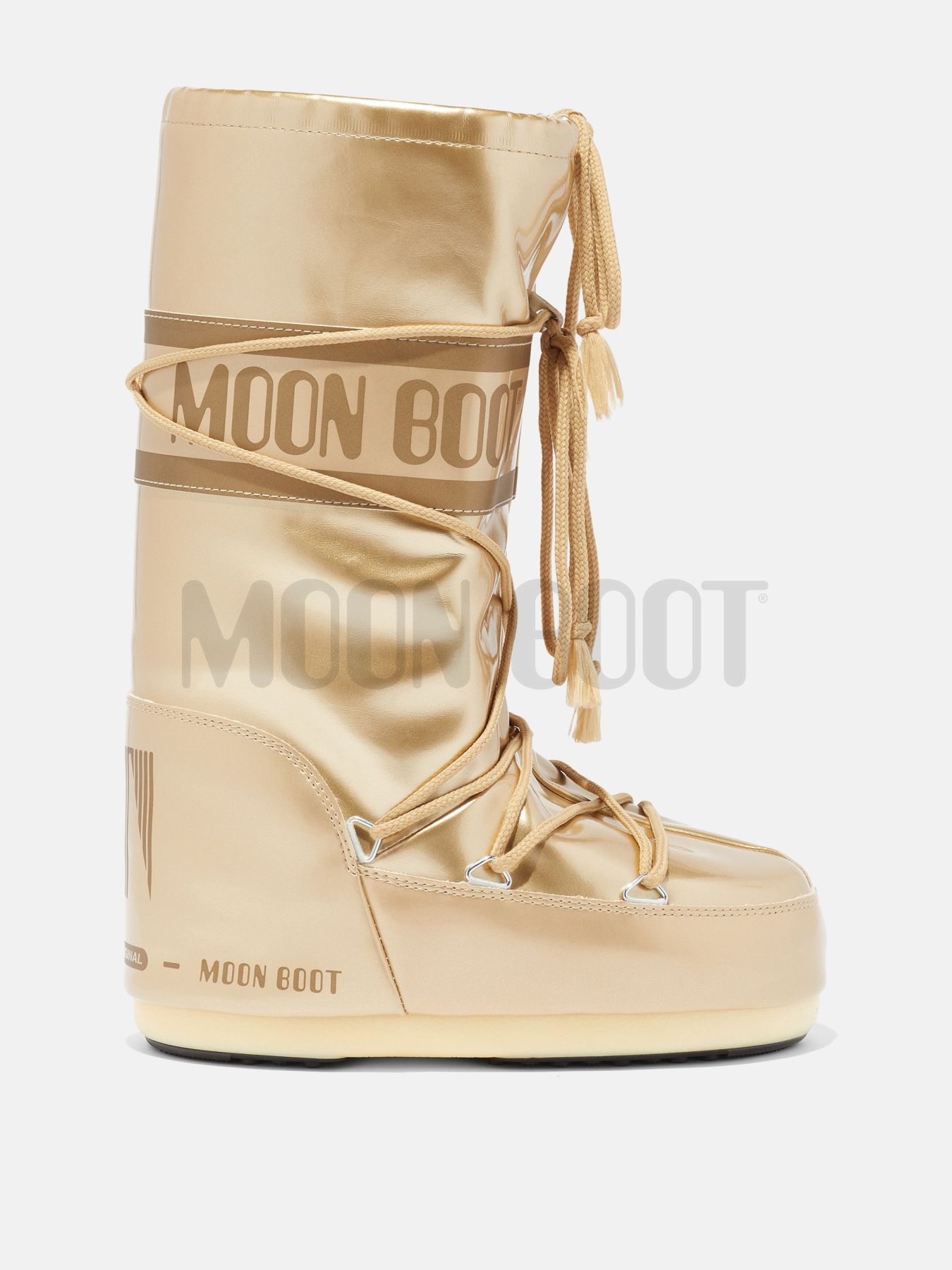Детские мунбуты Moon Boot Vinil met gold junior - Вдохновленный высадкой на Луну 1969 года, дизайн Icon является интерпретацией высокотехнологичного снаряжения астронавтов, сконструированных по космическим технологиям Nasa еще в 70-х в Италии. Он имеет все признаки оригинала: утепленный, оснащенный легкой подошвой и присоски на резиновой подошве, обеспечивающие надежный контроль над землей. Благодаря пенообразному внутреннику Memory Foam ноги не мерзнут при сверхнизких температурах, до -35. Так как они очень мягкие, то идут сразу на три размера: 35–38, 39–41 итд. После нескольких выходов принимают форму вашей ноги и форму правого и левого сапожка. Верх из глянцевого текстиля.